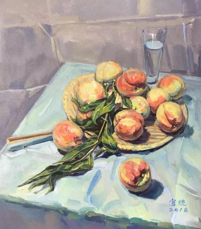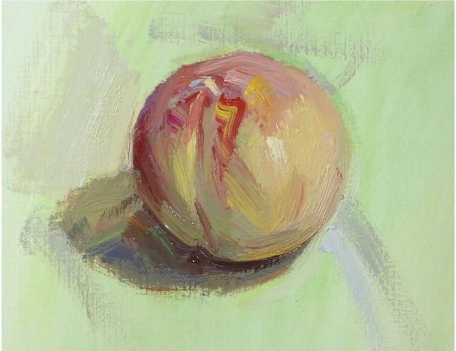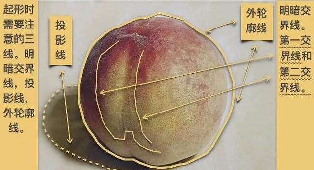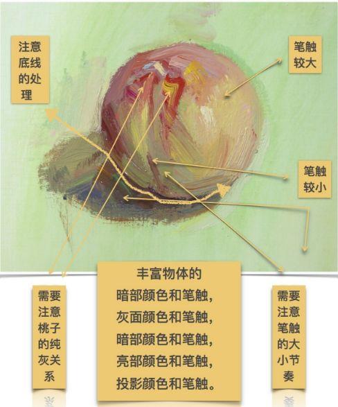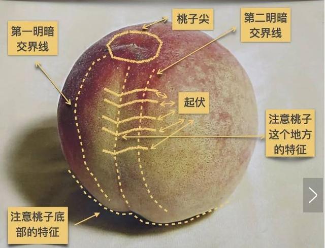 在众多色彩水果中,桃子算是比较难画的了,因为不仅要画出型,画出体积,还要把桃子的色彩明显地表现出来