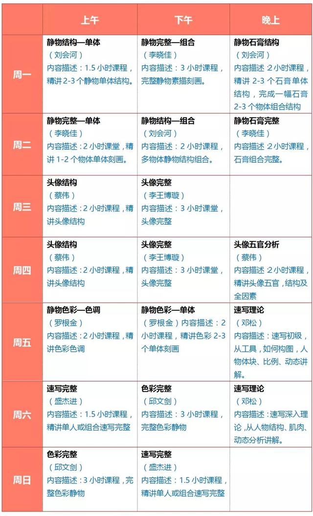 - 艺境线上直播课课程表 -