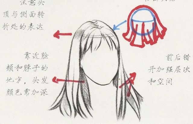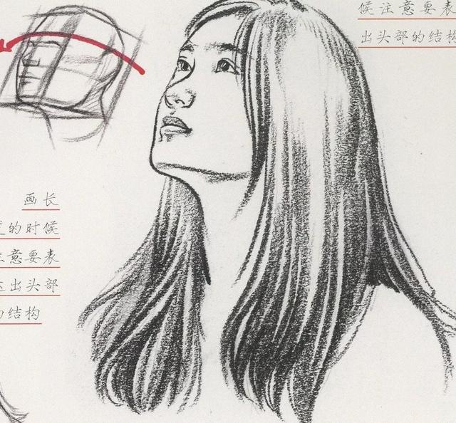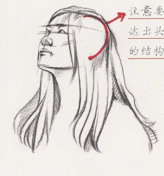 画长发的时候注意要表达出头部的结构。
