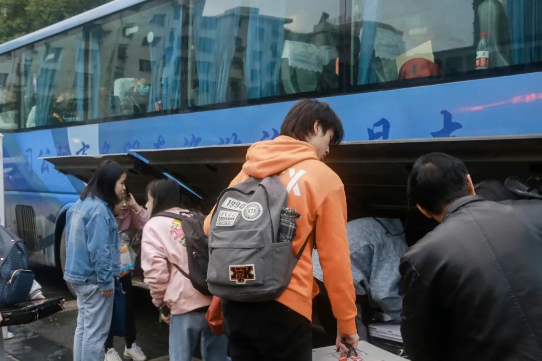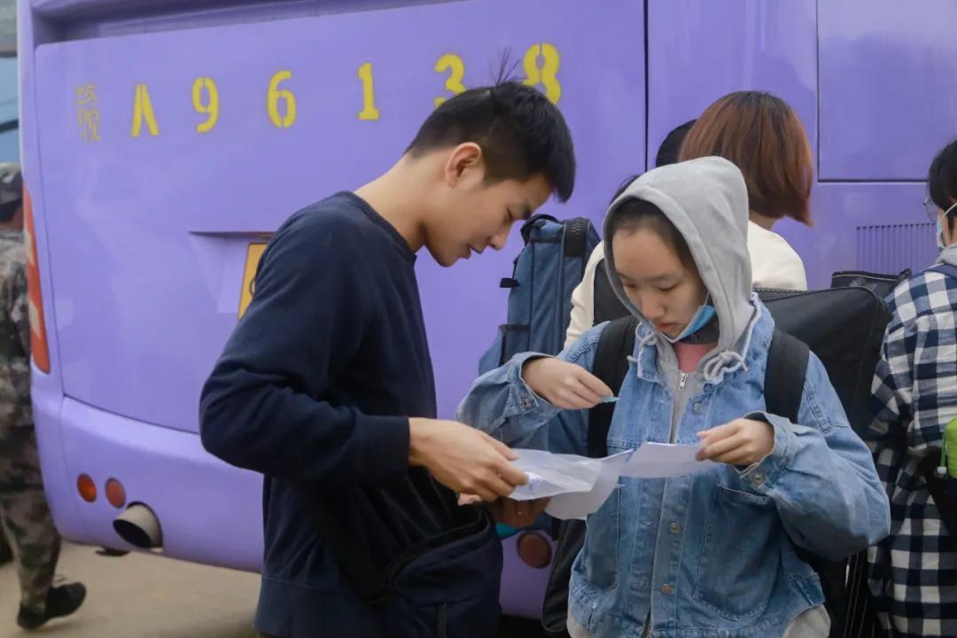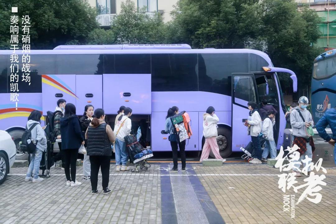 开往考试地点的大巴便在各校区等候,