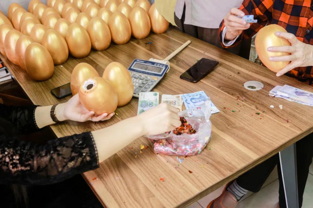 金蛋装好 满桌金灿灿